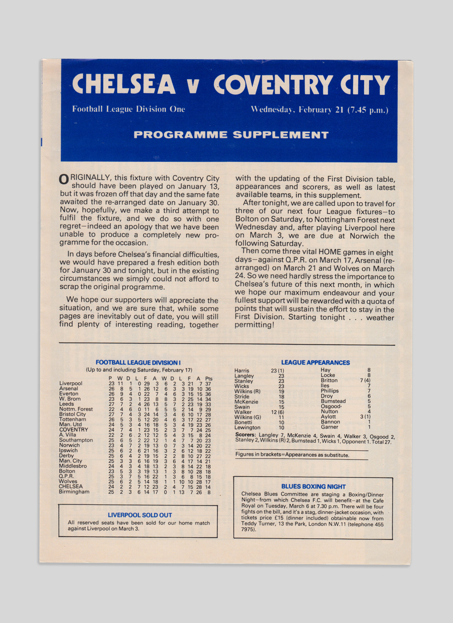 New Chelsea boss Danny Blanchflower can’t prevent their eighth home defeat. City come from behind to bag their first away win since September. Barry Powell’s header hits the bar and Ferguson touches it in. Birmingham’s £1 million Trevor Francis chooses Forest, not City.