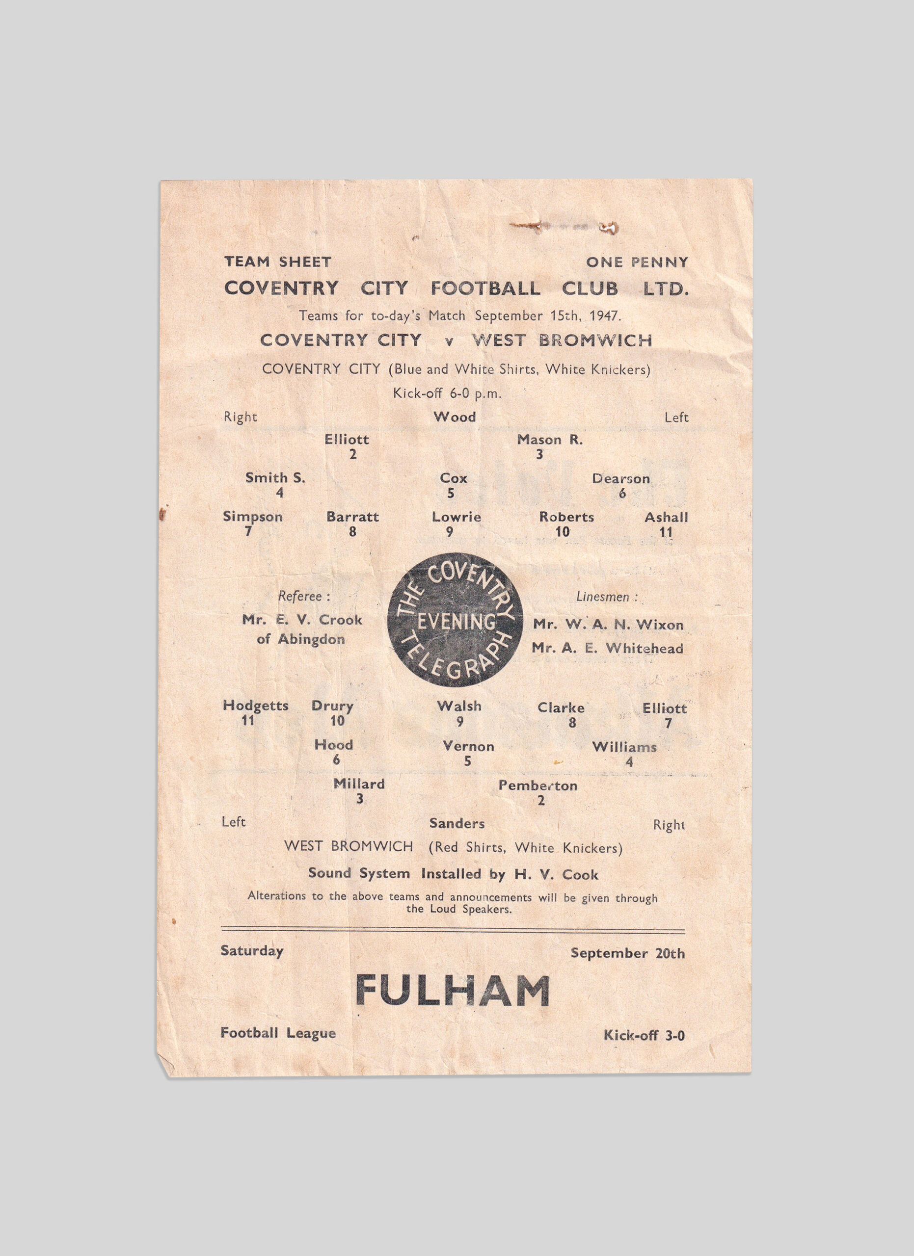 Coventry City 13th | West Bromwich Albion 2nd (22)